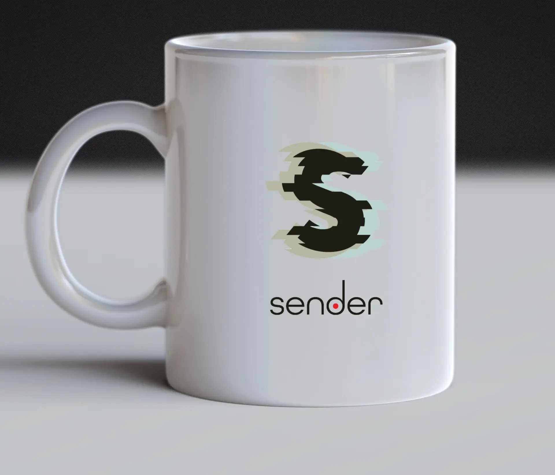 Kaffeebecher in weiß mit 330ml Fassungsvermögen. SENDER Logo. Spühlmaschinenfest.
